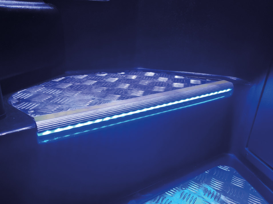 Iluminación propia con perfil aluminio con su respectiva luz de paso.